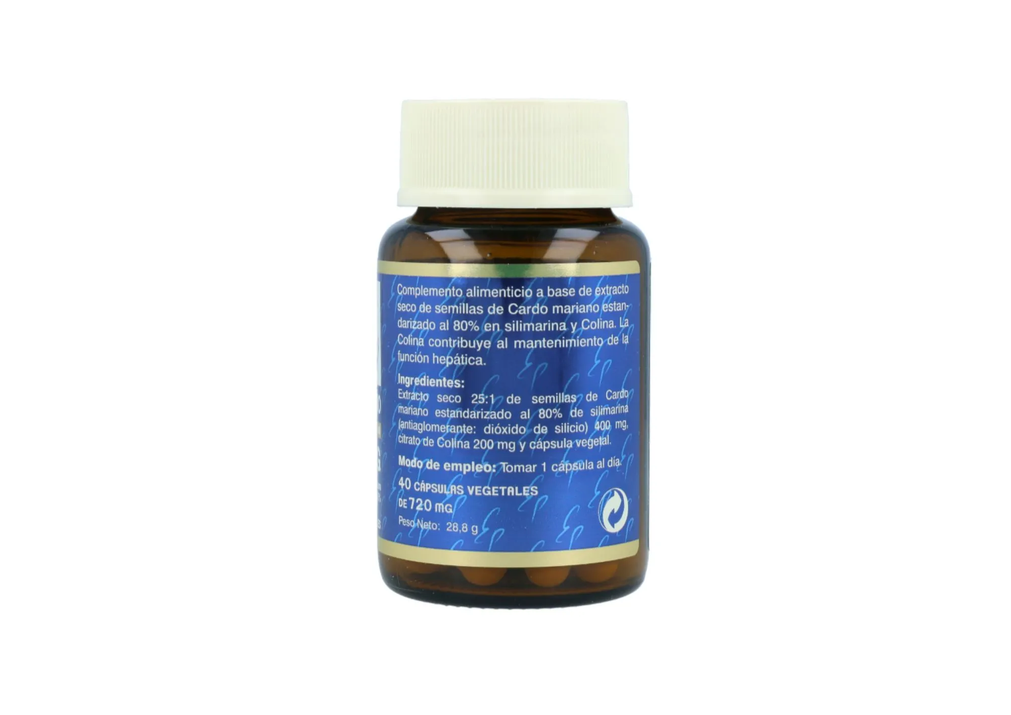 Por 1 cápsula: Extracto seco 25:1 de semillas de Cardo mariano (400 mg) (equivalentes a 10.000 mg de polvo de semillas) – contenido en silimarina (320 mg), Citrato de Colina (200 mg).