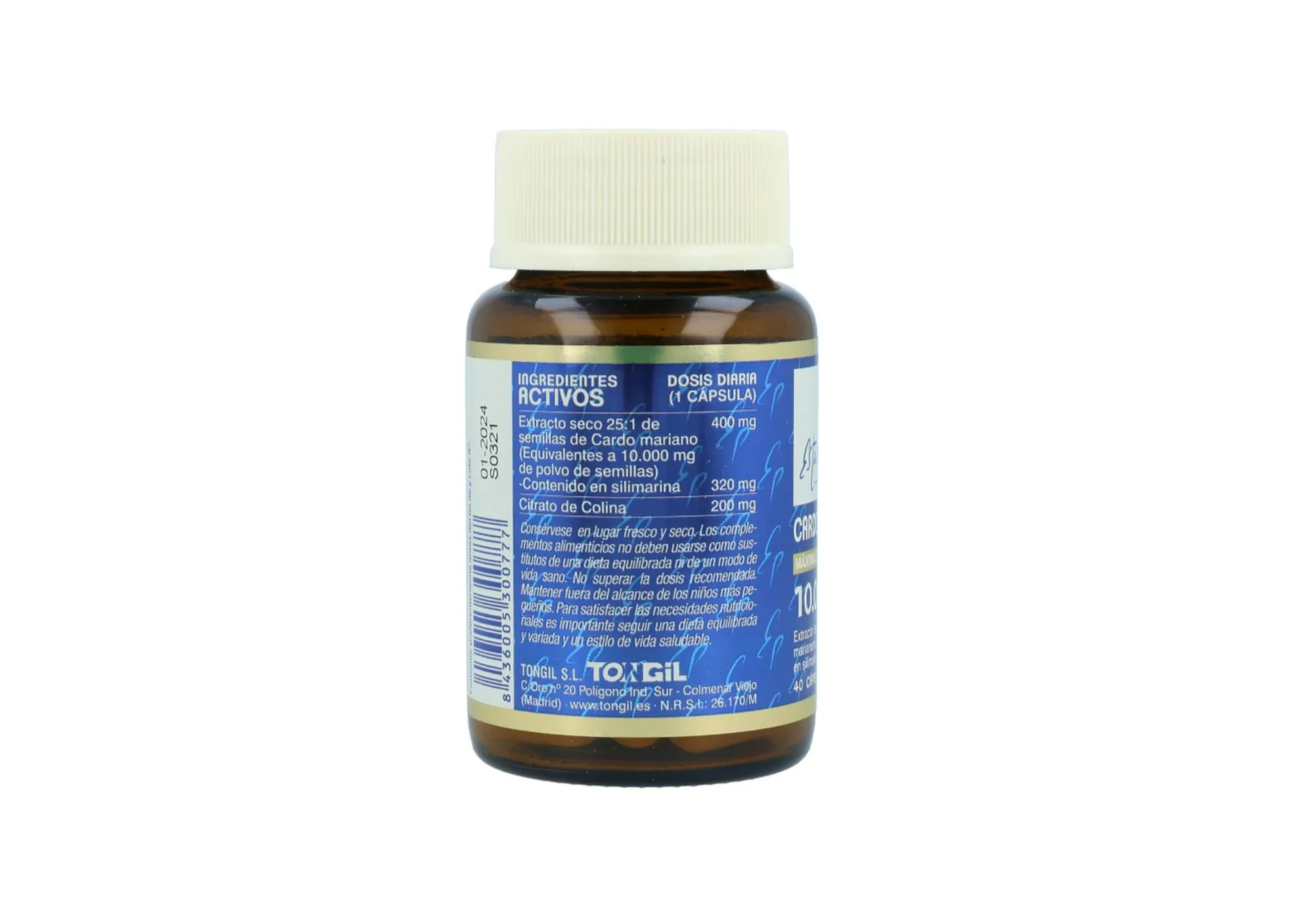 Rigurosos controles de calidad aseguran la no adulteración de la especie utilizada, así como la ausencia de tóxicos y metales pesados. Una cápsula aporta 400 mg de extracto seco de semillas de cardo mariano. La estandarización garantiza el aporte de 320 mg de silimarina por cápsula. Además, contiene 200 mg de colina por cápsula.