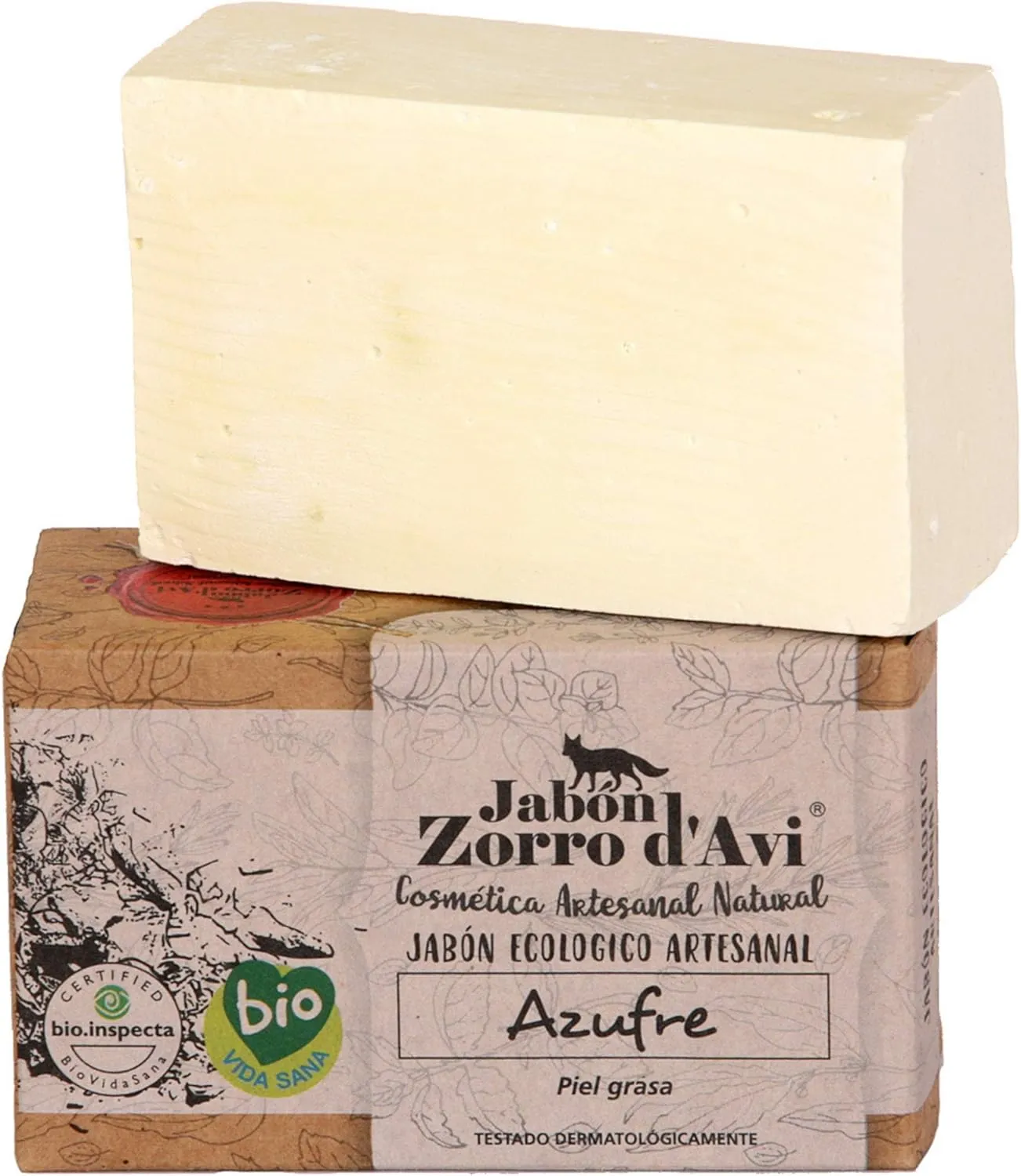 Elaboración. Jabón de azufre ecológico artesanal elaborado con aceite de oliva ecológico de calidad superior obtenido mediante procedimientos mecánicos y azufre procedente de manantiales de aguas sulfurosas. No contiene ingredientes derivados de animales. Jabón libre de parabenos, colorantes, conservantes y aromatizantes. Exento de aceites minerales derivados del petróleo. Producto biodegradable respetuoso con el medio ambiente. No testado en animales.
