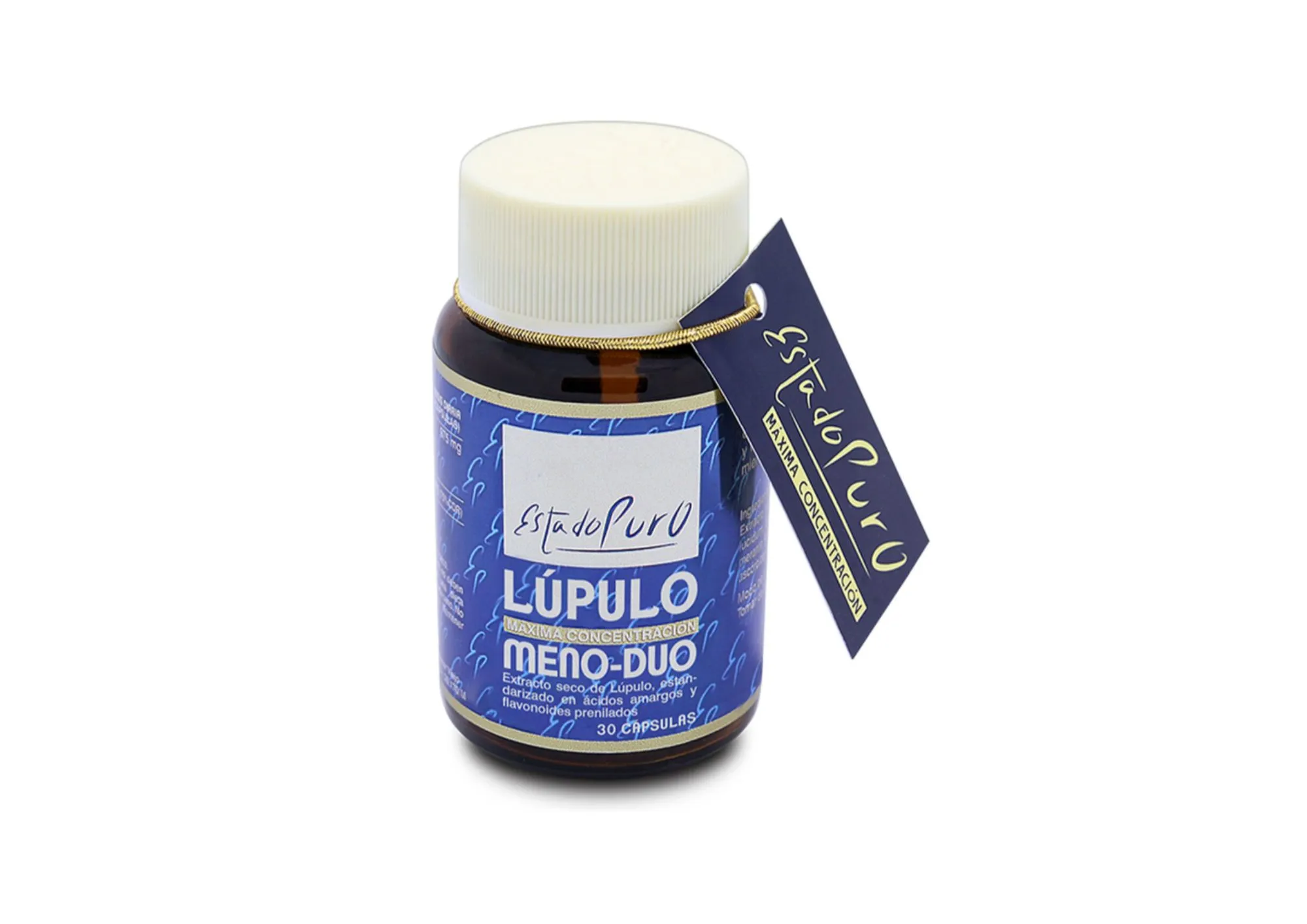 Lúpulo meno-dúo de Estado Puro tiene doble estandarización en ácidos amargos y flavonoides prenilados, reforzado con vitamina B6, que contribuye a mejorar los síntomas asociados a la menopausia.