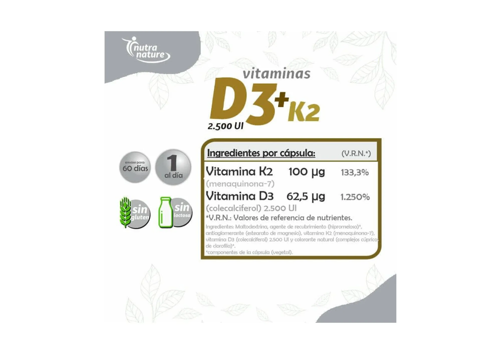 Vitamina D3 + K2 (60 cápsulas) de Pinisan